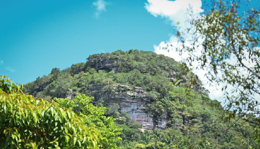 Covering an area of more than 12,000 hectares, the Serranía de La Lindosa stands imposingly in the middle of the Guaviare jungle. It forms part of the Precambrian shield of South America and its rocky outcrops, known as tepuis, are home to a biodiversity with unique characteristics. Its rocks have formed a unique landscape characterized by gullies (deep ravines), tunnels, and natural bridges, and crystal clear and reddish (due to oxides) waterways originate here, flowing into the Guaviare River and creating unparalleled aquatic habitats.